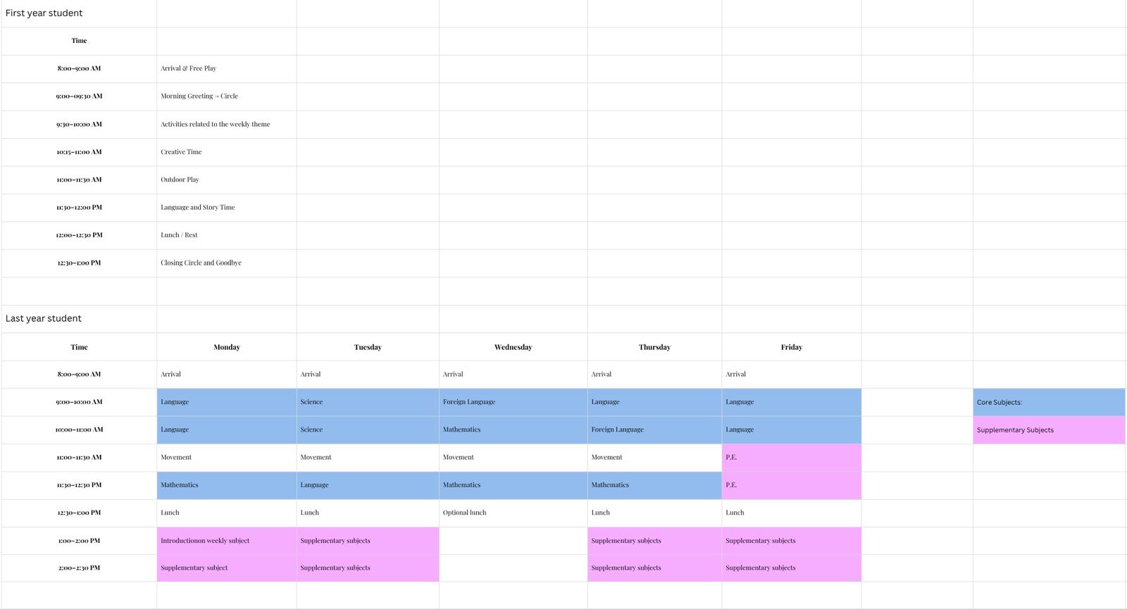 Our Daily Rhythm & Pedagogical Approach: We are aware that many schools might choose to organize their day differently. However, we firmly believe that school should adapt to the developmental needs of children, not the other way around. That is why we have designed a daily schedule that respects children's natural rhythms, fosters deep engagement, and encourages both intellectual and emotional growth.